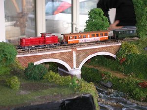 DCC feeding system (Lenz set 90) enabled us to set up an XpressNet web and to plug in the handheld throttles (Lenz + Lokmaus2) in the nearest socket while following the trains.