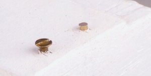 Das Gleise verlegen wird für viele der Anfang der richtigen Modellbahntätigkeiten bei dieser Modulbauaktion sein. Ab jetzt haben wir die Möglichkeit, ab und zu unsere schönste Lok mit den schönsten Wagen auf das Modul zu stellen. Das sieht doch viel besser aus als in der Verpackung. Aber bitte langsam: denn auch beim Verlegen der Gleise kann man einige Fehler machen. Bevor die Gleise auf dem Modul verlegt werden, schrauben wir von oben genau an der Stelle, wo die Schienenprofile später liegen, in die Endprofile zwei kleine Messingschrauben. Sie werden mit einer Laubsäge bis auf die Höhe abgesägt, wo die Schienenunterkante anfängt.