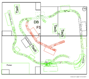 Il layout riporatto qui a fianco comprendeva una linea tedesca da cui si staccava una linea italiana dalla stazione di Hausen.
